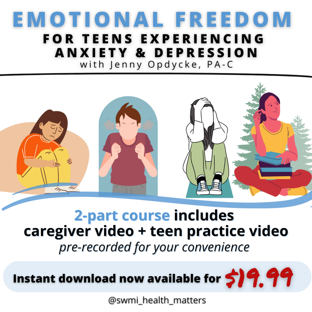 Join Jenny Opdycke, PA-C, in this two-part series to learn about the emotional freedom technique, designed especially for caregivers AND teens with anxiety and depression.